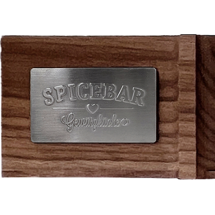 - Spicebar-Magnetregal (ohne Gewürzdosen): 6er Gewürzregal-Nussbaumholz
