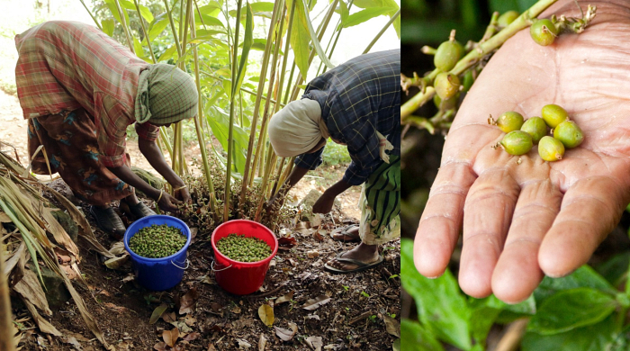 Unsere grünen, wilden Kardamomsamenkapseln werden im Urwald Indiens aufwendig per Hand gepflückt und gesammelt. Das händische Pflücken ist besonders wichtig, da die reifen Samen-Kapseln leicht aufplatzen können und ihre kleinen, schwarzen, aromatischen Samen verlieren. Diese Samen enthalten die kostbaren ätherischen Öle mit dem besonderen Aroma.